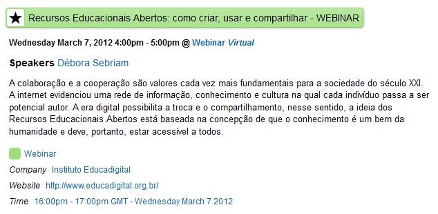O OpenCourseWare Consortium anuncia a Primeira Semana Mundial da Educação Aberta, de 5 a 10 de março de 2012. A Semana Mundial da Educação Aberta (Open Education Week) é um evento anual e global que objetiva à conscientização no que diz respeito aos benefícios do compartilhamento livre e aberto na educação e, em particular, em relação aos Recursos Educacionais Abertos (REA). Recursos Educacionais Abertos são materiais educacionais de alta qualidade, distribuídos de forma aberta e livre de custos e que oferecem a pessoas de qualquer parte do mundo a oportunidade de compartilhá-los, utilizá-los, adaptá-los, traduzi-los e reutilizá-los.
