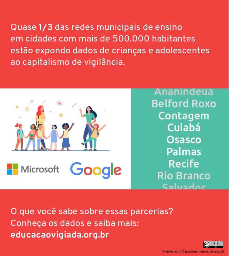 In recent years there has been a growth in Brazil in the provision of private educational platforms to public education and research institutions by large technology companies, particularly Google and Microsoft. During this time ‘free’ services and products have been offered to public institutions. These agreements, in large part, have as their counterpart the collection, processing, use, and (potentially) commercialization of data from their users by these companies. This process has been consolidated and has expanded due to the restrictions of travel and face to face activities during the Covid-19 pandemic, with the implementation of remote teaching and work models.